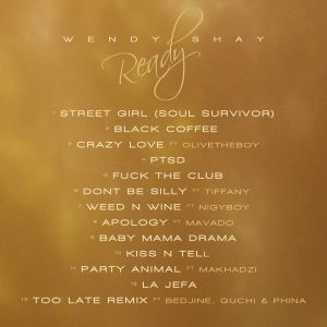 The collabs elevate it to continental status. Jamaican dancehall icon Mavado brings brooding edge to “Apology,” a duet on relational wreckage. South Africa’s Makhadzi injects amapiano sparkle into “Party Animal,” while the closer—“Too Late Remix” with Bedjine, Guchi, and Phina—serves as a sisterhood anthem for ditching dead weight. Tracks like “Weed N Wine” (feat. Nigy Boy) and “Baby Mama Drama” add levity and shade, proving Shay can pivot from therapy session to club banger without missing a beat.